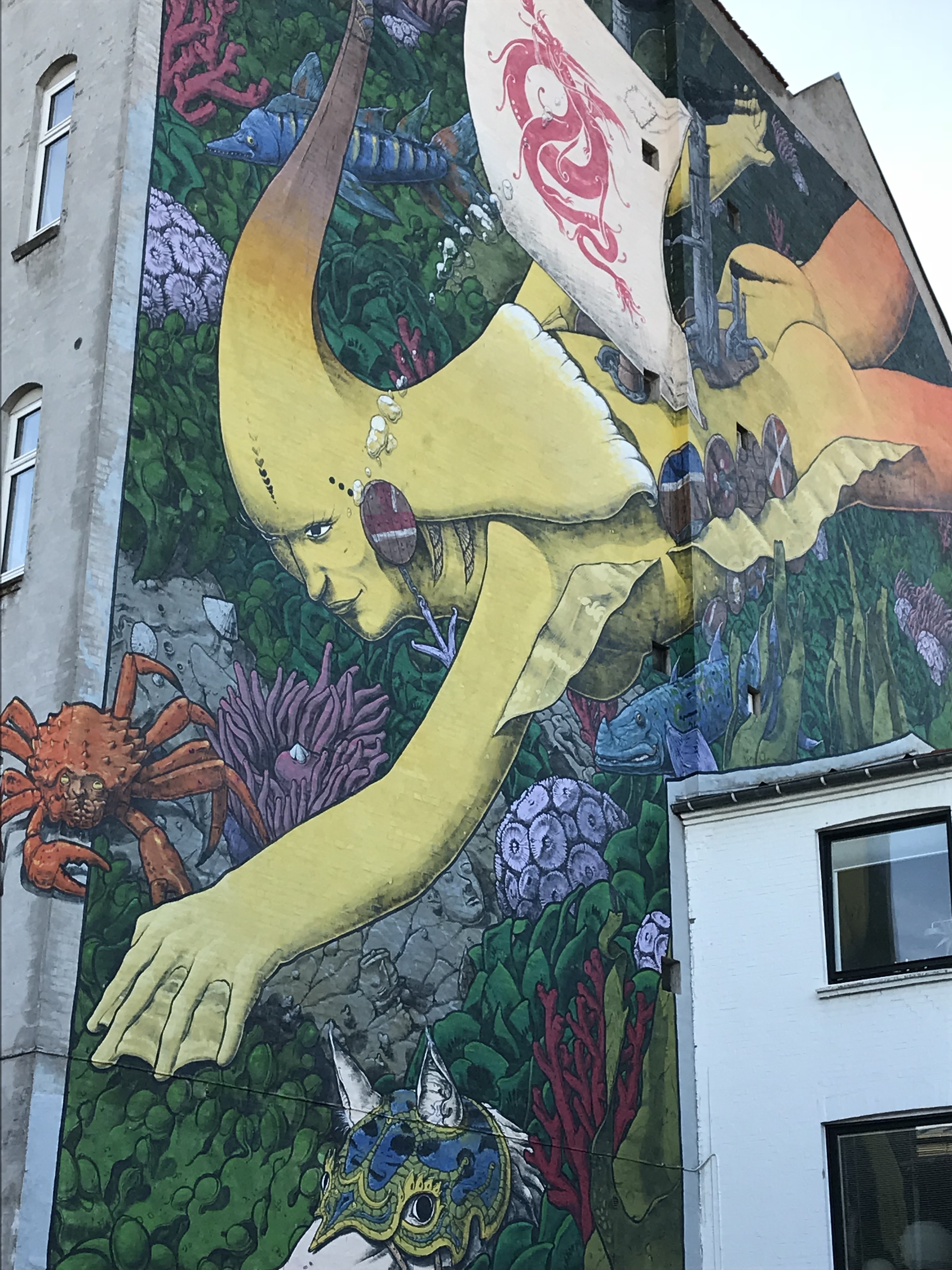 We are talking about WEAArt. A street art initiative, that you will find in Aalborg where two art lovers and entrepreneurs, Lars Bonde og Mads Mulvad, since 2014 have decorated with street art in the side streets and backyards of the city. The project has taken place on the initiative of the two gentlemen. They have chosen and contacted world-famous street art artists, coordinated and made agreements with owners of the buildings which are ornamented with the street art. They have also applied capital from fonds which have made the WEAArt projects possible. The project has not received any public funding. Flügger has since 2014 supported the project which has resulted in 37 street art paintings in 2019 adorning the side streets and backyards in the center of Aalborg city.