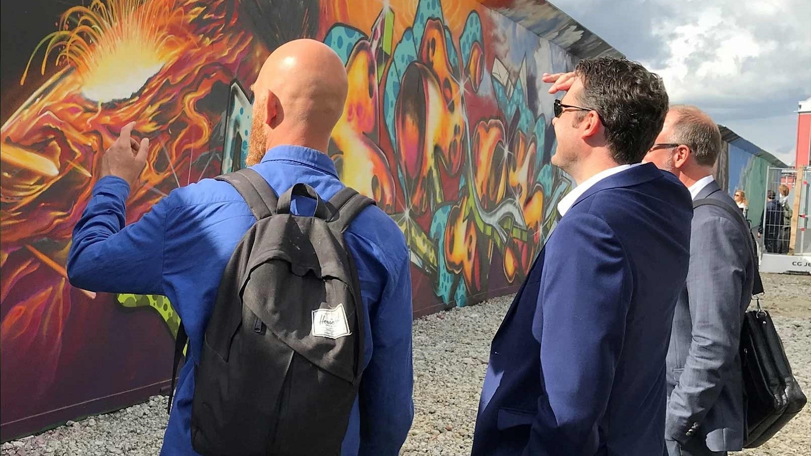 In September the mural was celebrated at a grand opening where the Managing Director of Copenhagen Metro Service, Henrik Plougmann Olsen and Professor in evolution and Managing Director at National History Museum in Copenhagen, Peter C. Kjærgaard held speeches and were shown around along the fence by the artist spokesperson, Peter Skensved.
