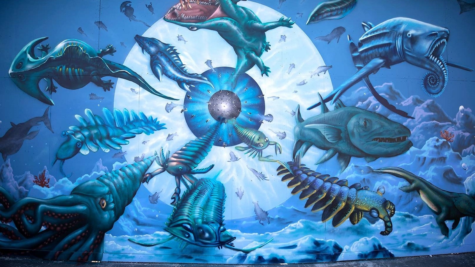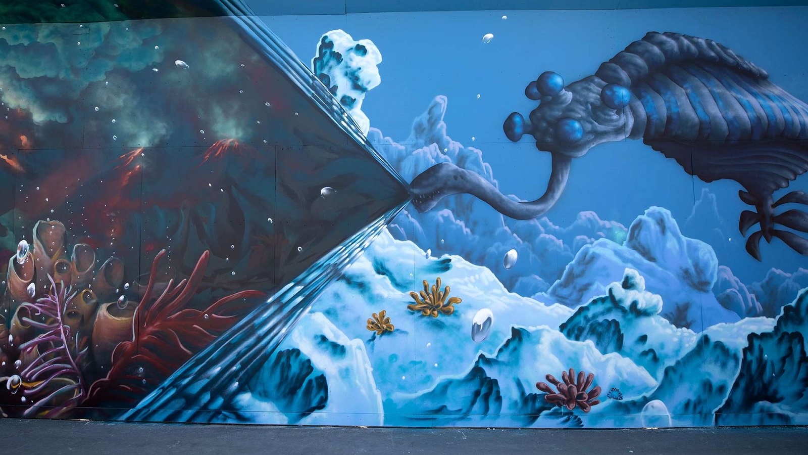 During the summer of 2018 artists were busy at Enghave Brygge in Sydhavnen, Copenhagen creating Europe's longest mural. “Evolution 2” is the name of the work – and on the half-kilometer long fence is depicted the world's birth, from The Big Bang to the present, with a peak into the future as the artists anticipate it.