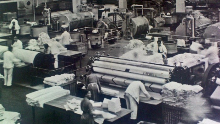 In 1938 a large laundry facility was built, and the workforce came from Sundholm. Around 100 men and women worked in the laundry facility that provided clean linen for hospitals in Copenhagen. In 1976 the last asylum individual was placed at Sundholm and in the 1980’s the laundry industry stopped.