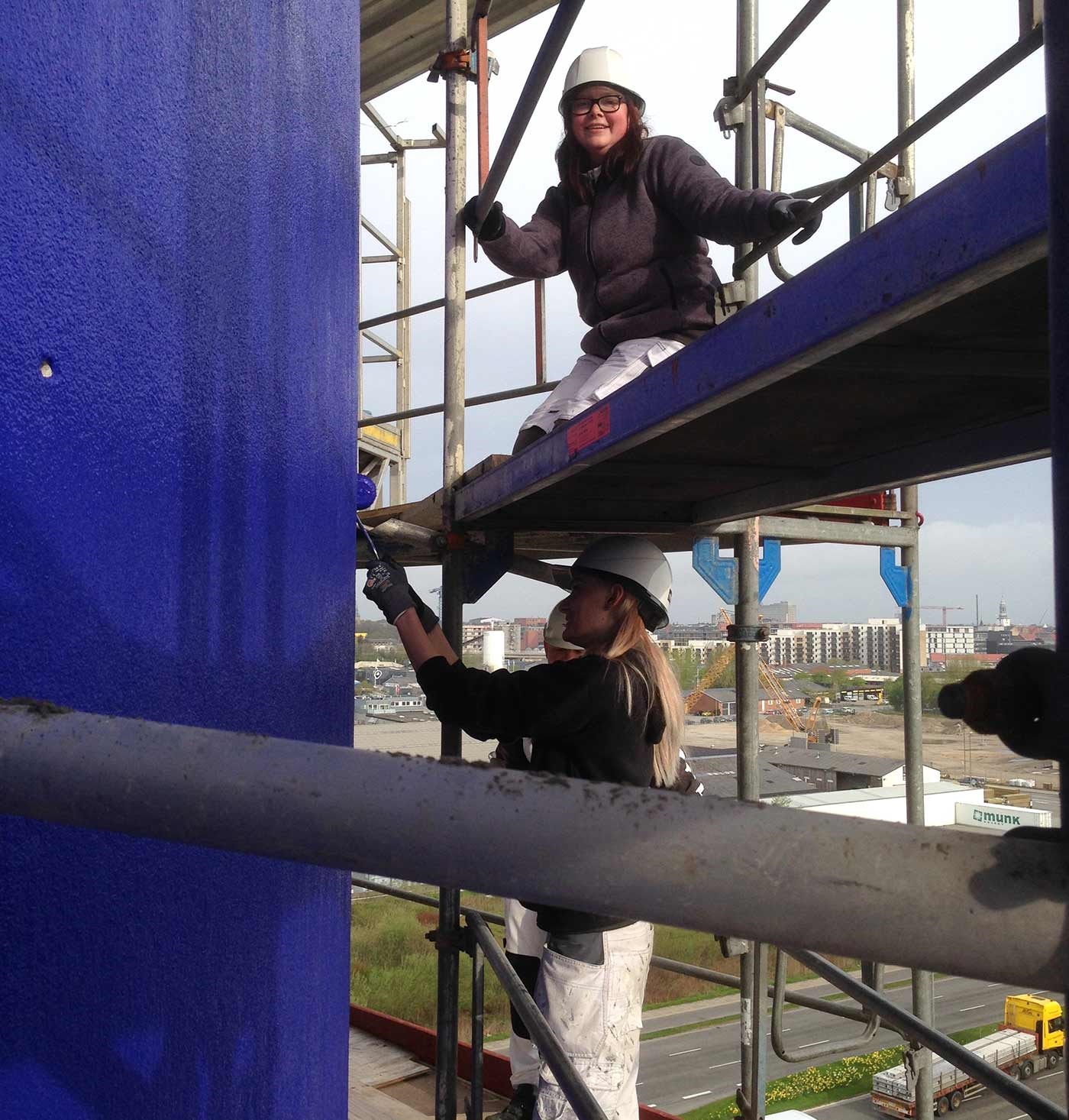 For this project as for previous projects, the motif is being painted by trainee house painters and decorators from TECHCOLLEGE – and at the end of May two of the students were taken on as trainees by an established master house painter and decorator. Lone Nordby adds: “We’re also very proud that this project helps the skilled house painter and decorator students from TECHCOLLEGE, and we hope that it’ll help them in their future careers.”
