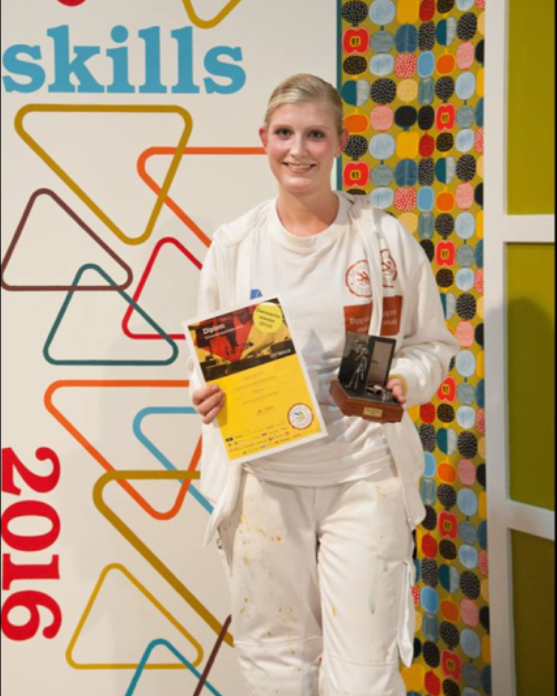 Rebekka’s choice of job is no longer unusual for women. The painters’ and decorators’ trade has shed its male-dominated image and girls with a sense for detail and a high degree of perfectionism are making their mark. Rebekka has just completed the first main part of her course studies, where nine out of thirteen students were girls, and Rebekka’s boss Kurt Skovdal has also only ever had female apprentices. In May 2016, Rebekka won the Painter of the Year title at Denmark’s Danish National Championship in Skills, where the best talents within 36 vocational courses compete, and here all the competitors were women. “It’s definitely not a male-dominated profession any longer,” says Rebekka. “Being a painter demands close attention to detail and involves improving the aesthetics of a building, and then you need to be a perfectionist – and perhaps this appeals to us girls more than boys.”